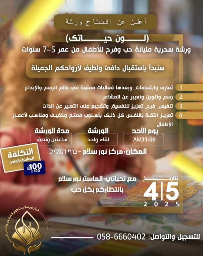 אני נור־סלאם, מלווה אנשים בכל הגילאים במסע לצמיחה אישית ולחוסן נפשי. מתוך ניסיון, הקשבה ואמונה שכל אחד יכול לפרוח, פיתחתי גישה שמשלבת טיפול רגשי, NLP, אמנות וסדנאות מעשיות.
